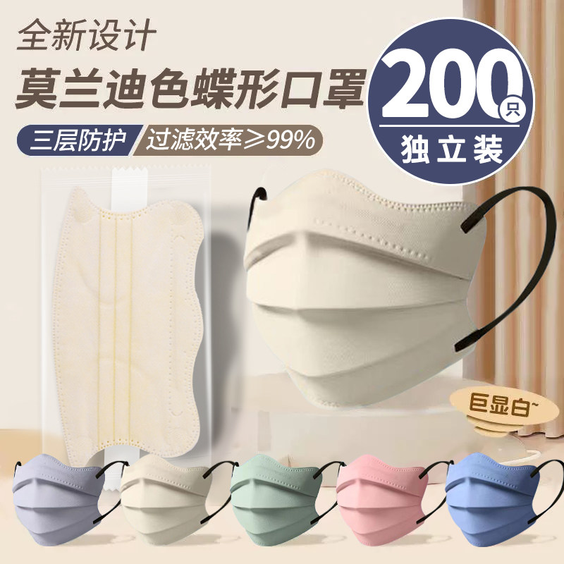 医用外科口罩一次性医疗正品莫兰迪色女高颜值波浪蝶形显脸小夏季