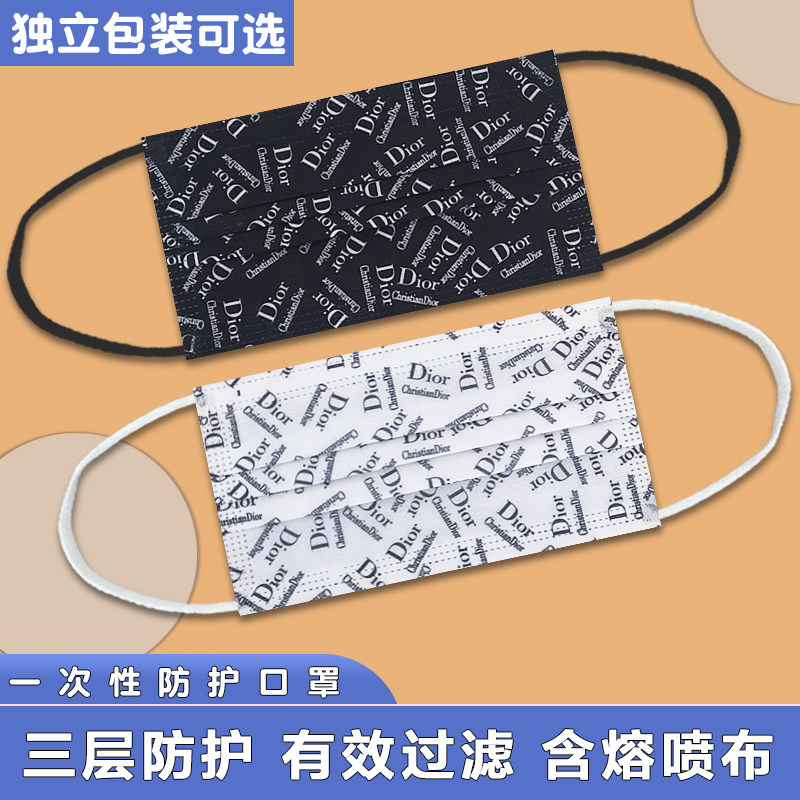 潮牌防护口罩一次性三层熔喷布口罩网红女神时尚印花口鼻罩高颜值