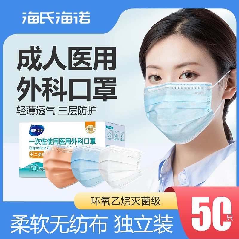 海氏海诺医用外科一次性成人儿童医疗灭菌级医护独立包装三层口罩