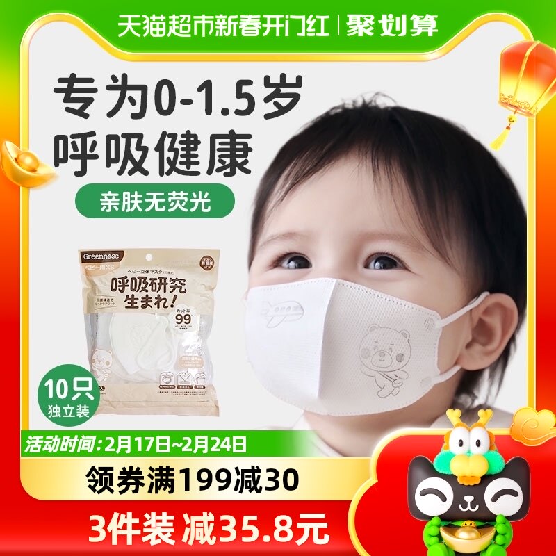 【自营】GREENNOSE绿鼻子婴幼儿童专用3d立体口罩0-3岁一次性防护