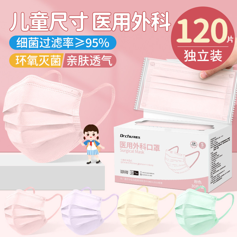 初医生儿童医用外科口罩女孩小孩上学专用正品官方旗舰店8到12岁