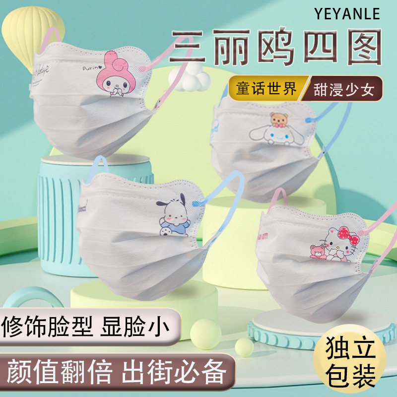 绿鼻子亲子款儿童立体彩色耳绳口罩樱花防护宝宝专用1-3 4-8岁