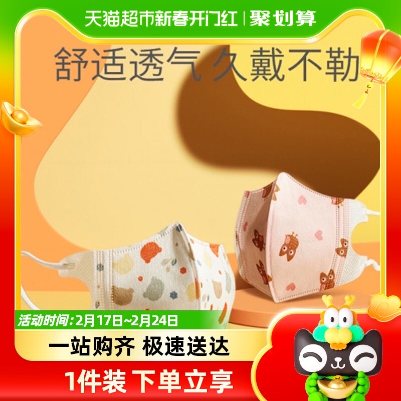 孩子王贝特倍护新国标3D立体透氧儿童卫生口罩30只装S码 0到3岁