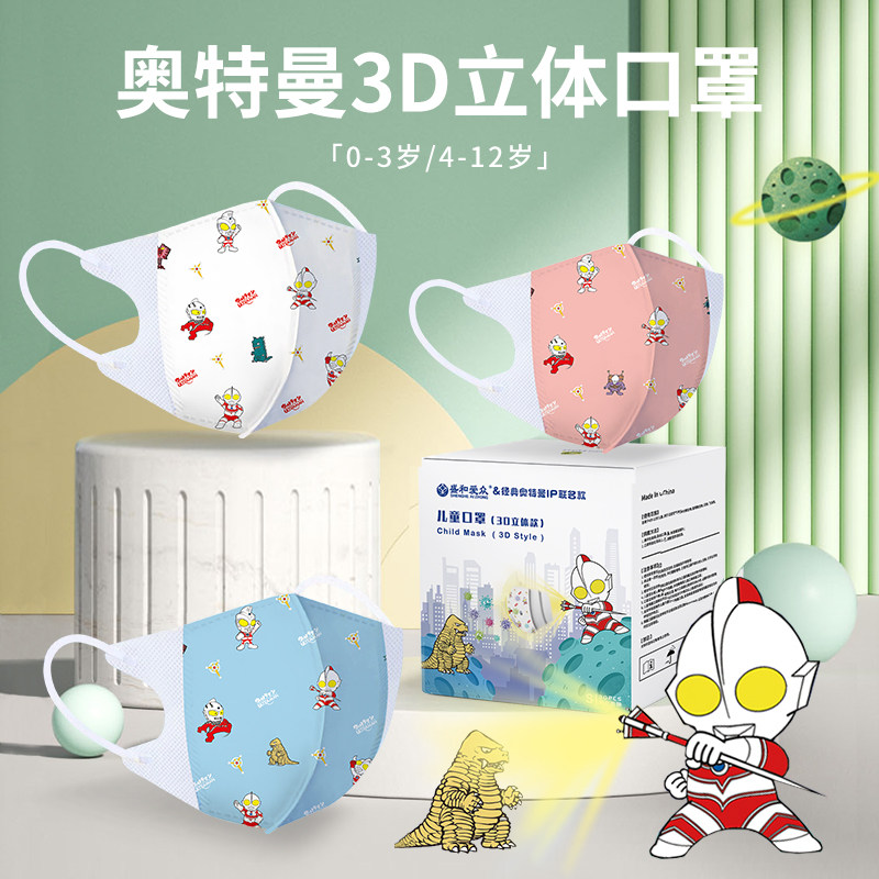 拍3免1 绿鼻子婴幼儿童小学生奥特曼0-12岁宝宝一次性3d立体口罩