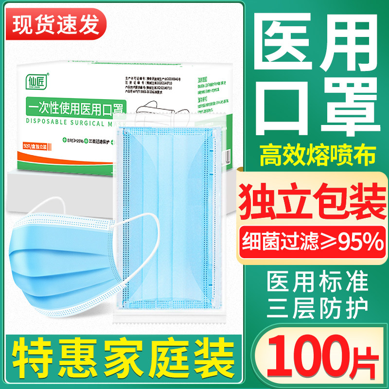 医用口罩一次性医疗口罩三层成人专用官方正品医用旗舰店独立包装