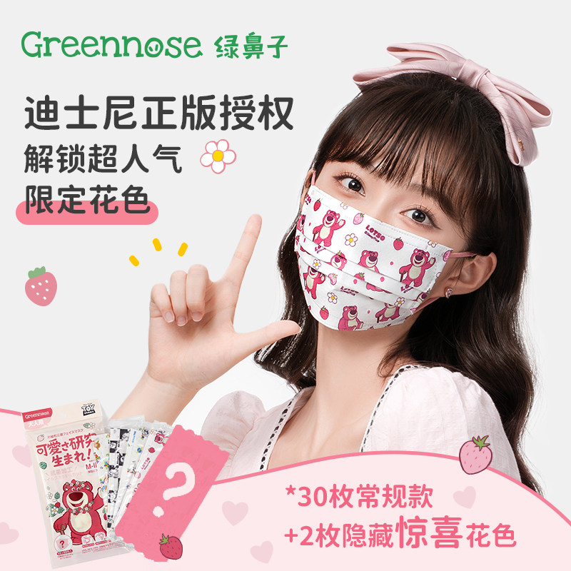 3包39.8!绿鼻子奇奇蒂蒂迪士尼成人盲盒平面口罩男/女生可爱10枚
