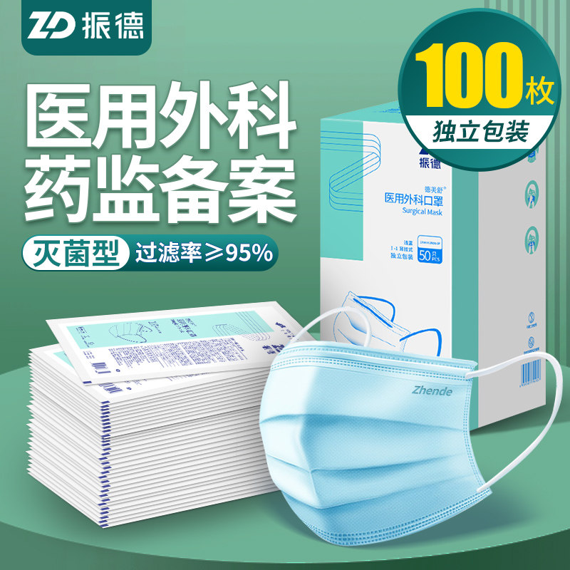 振德医用外科口罩一次性医疗三层正品正规灭菌级医护用成人100只