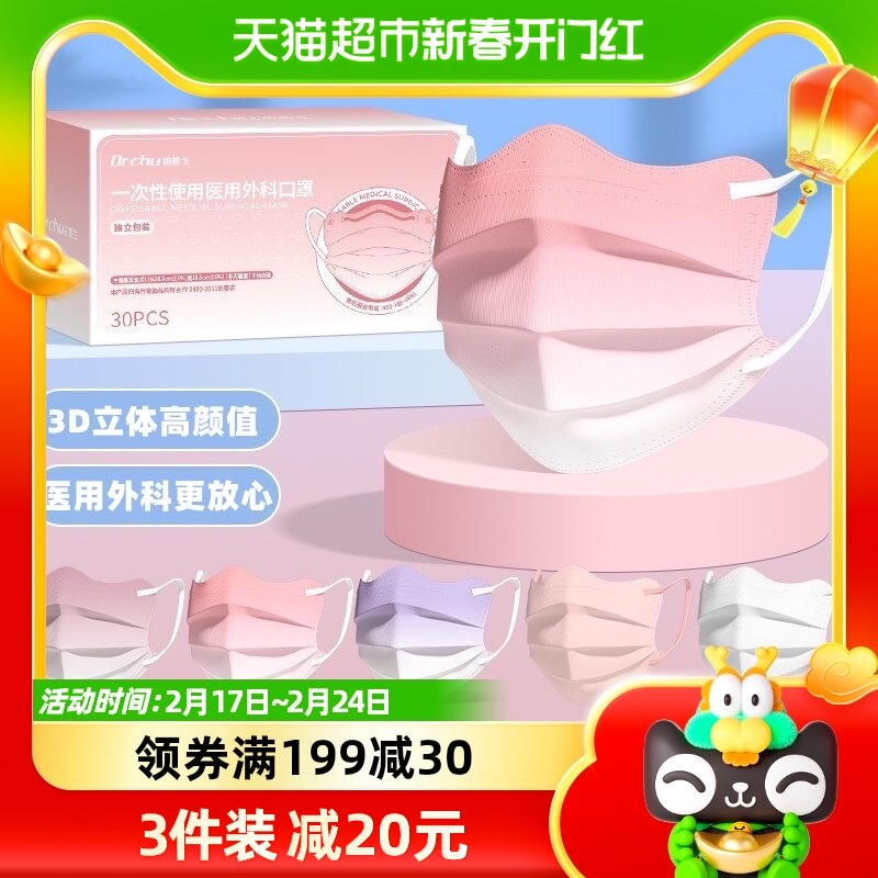 医用外科口罩3d立体一次性医疗女士高颜值秋冬季官方正品旗舰店