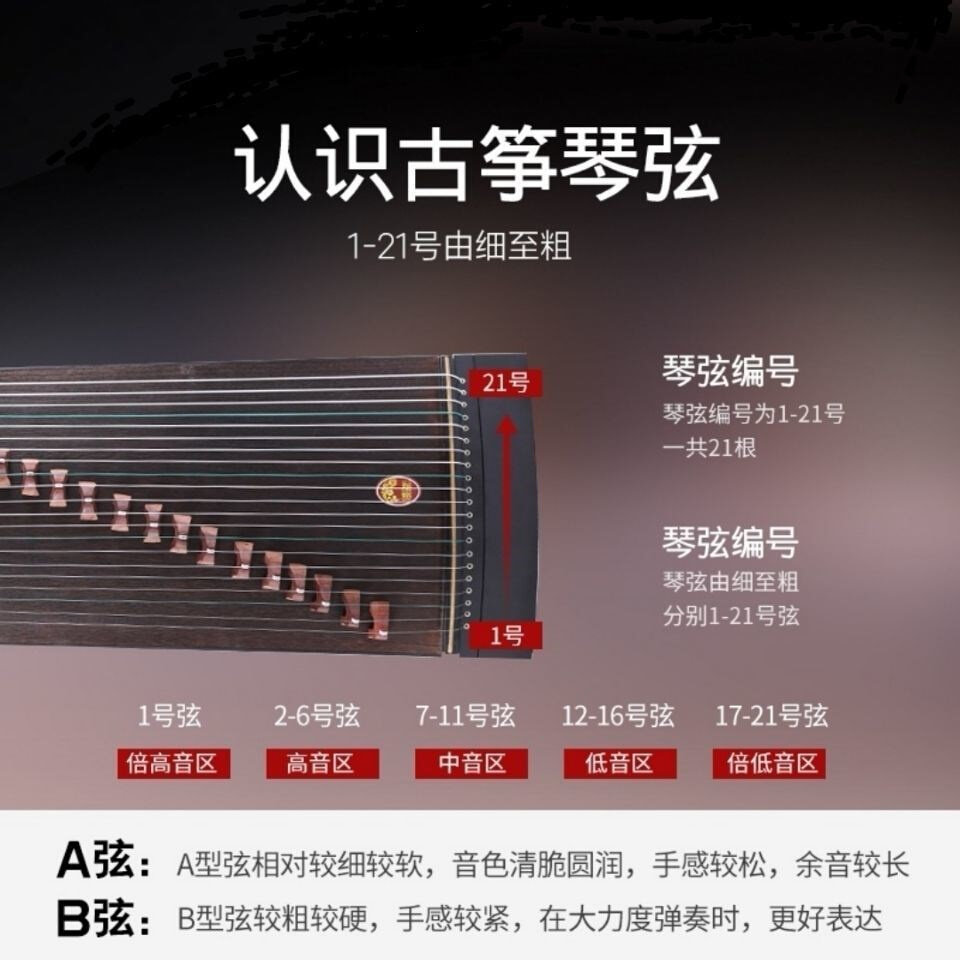 瑾瑜古筝琴弦1-21全套敦煌古筝1号弦初学者163CM标准通用型演奏级