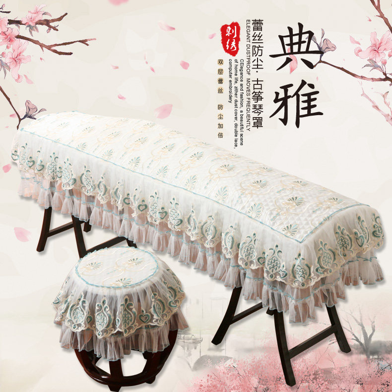 古筝防尘罩盖布文艺高档加厚亚麻刺绣琴布蕾丝琴披163165cm通用款