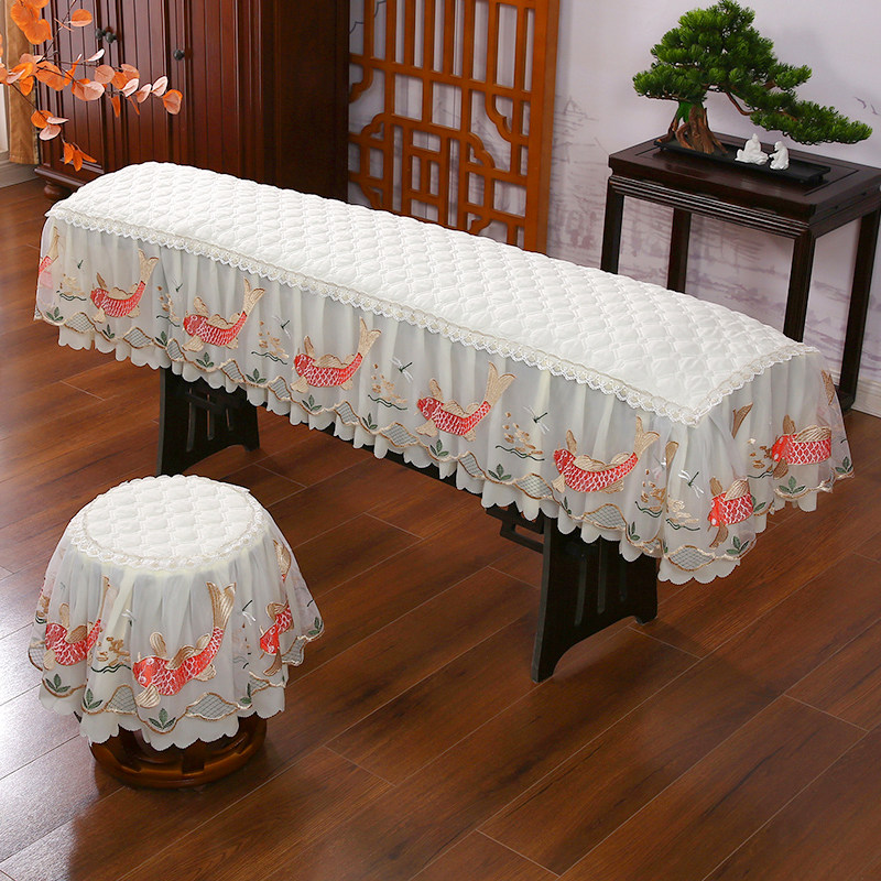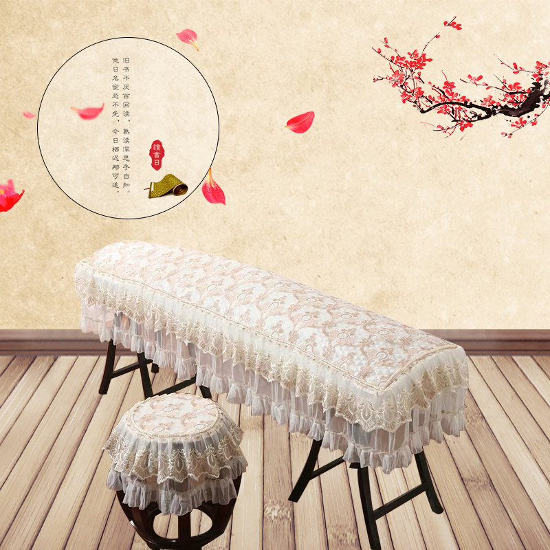 古筝防尘罩盖布文艺范高档加厚丝绒麻琴布蕾丝琴披163165cm通用款