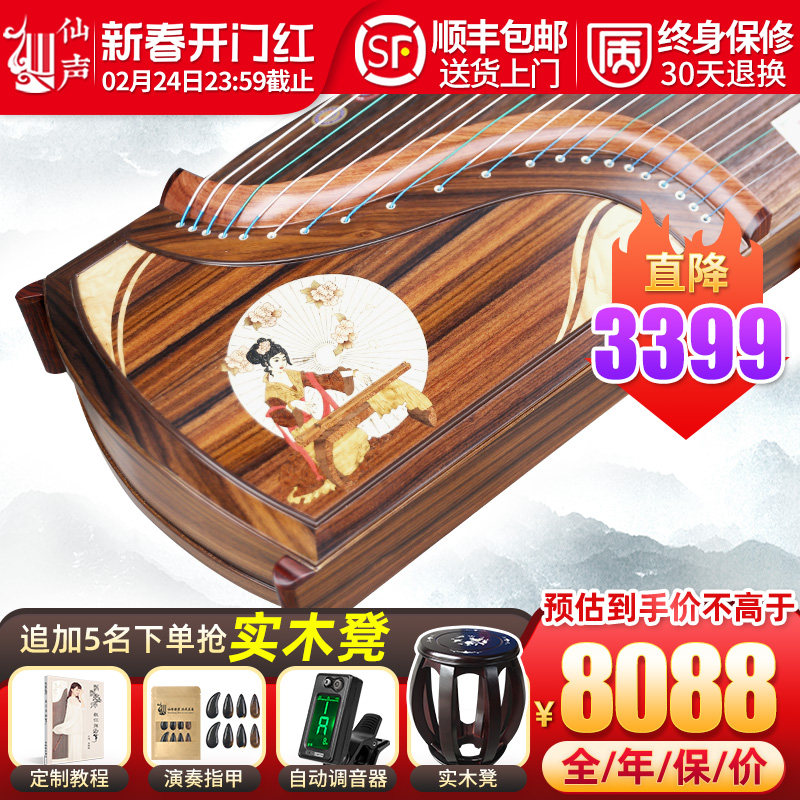 仙声乐器 挖筝仕女弹琴实木演奏专业古筝红木手工螺钿挖嵌古筝琴