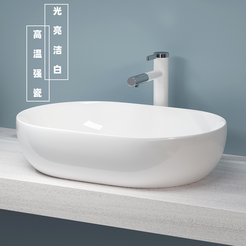 台盆台上盆半嵌入式洗面盆椭圆形卫生间家用台中盆22寸陶瓷洗手盆