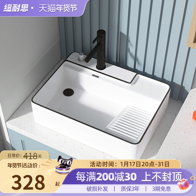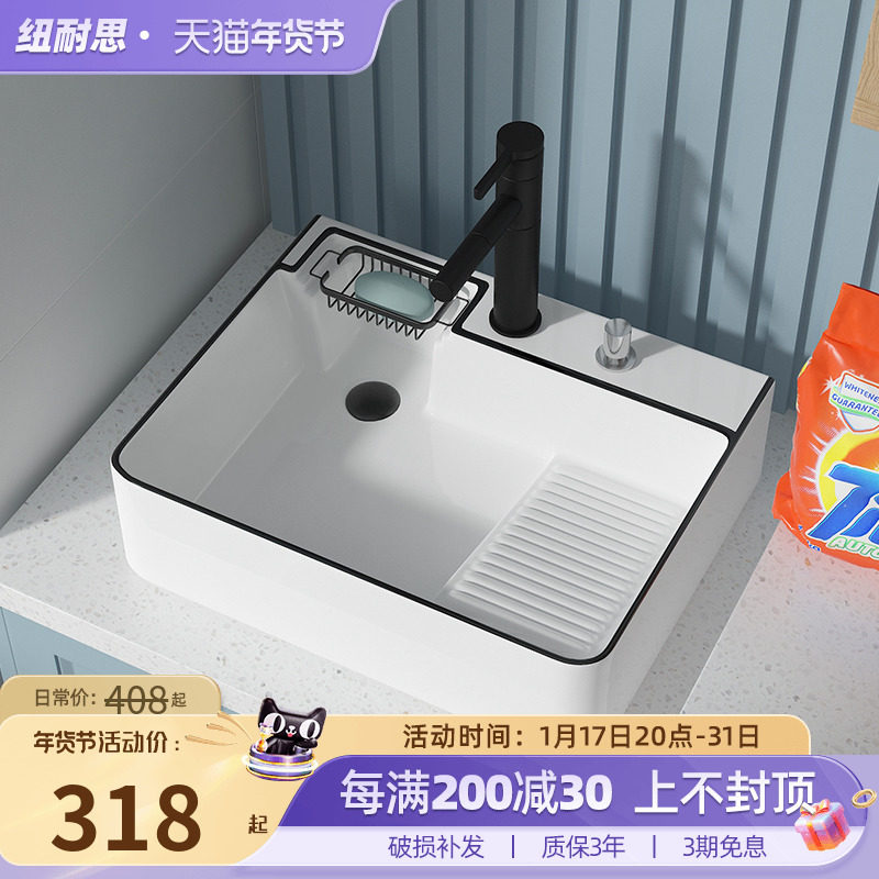 纽耐思台上洗手盆侧排水阳台洗衣盆带搓衣板家用洗衣机台上盆单盆