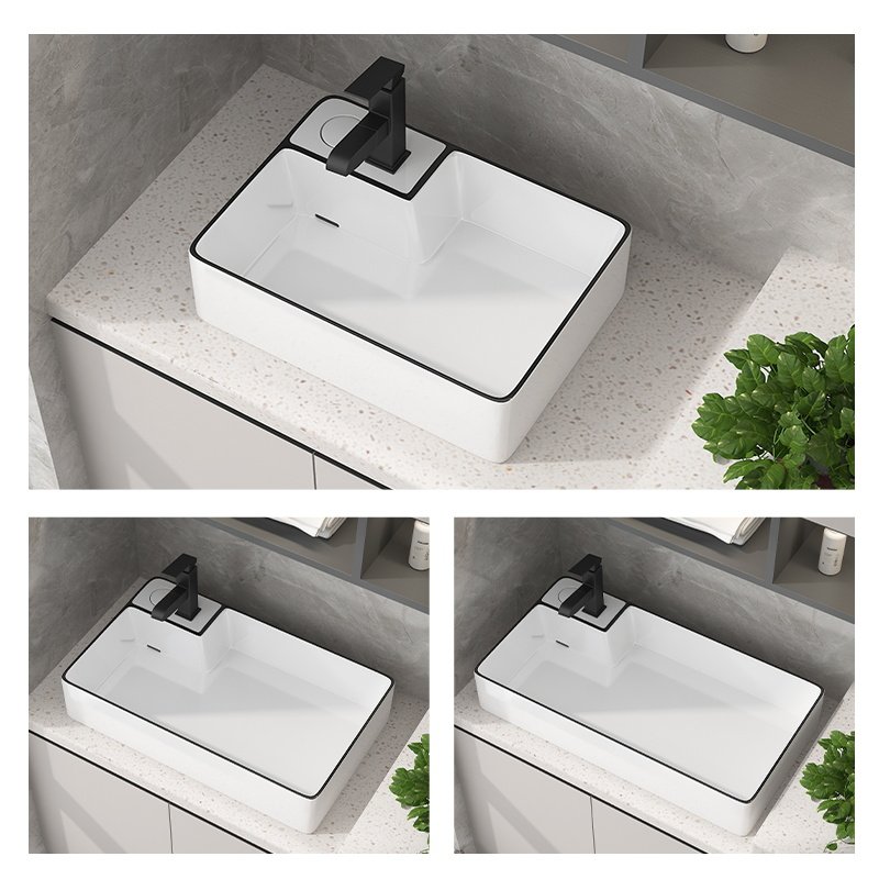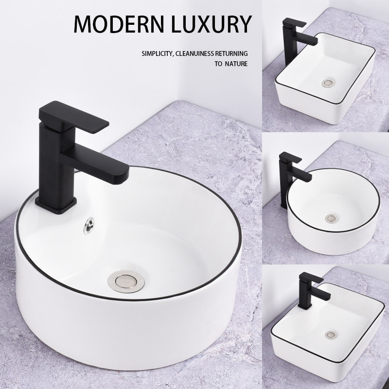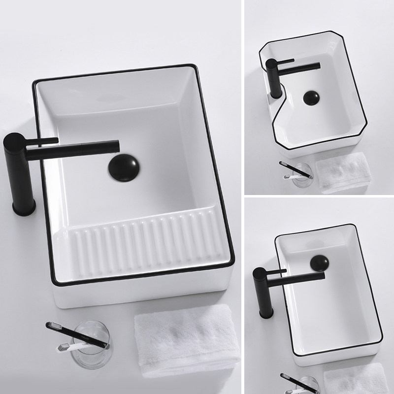 简约陶瓷黑边台上盆家用洗手盆卫生间洗脸盆阳台面盆小尺寸大号盆