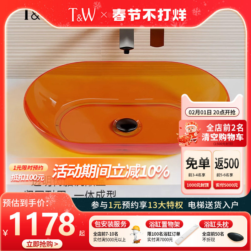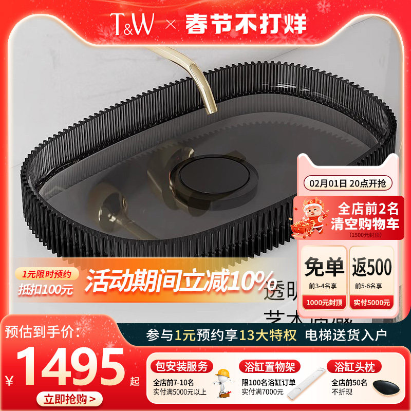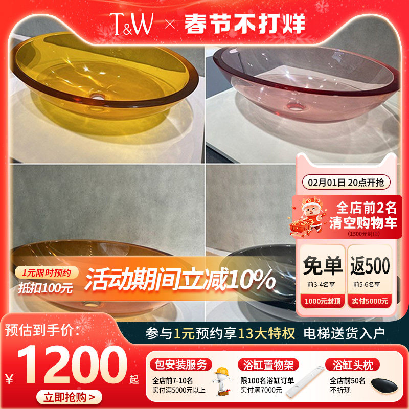 特拉维尔透明台上洗手盆树脂彩色水晶家用酒店民宿阳台艺术洗脸盆