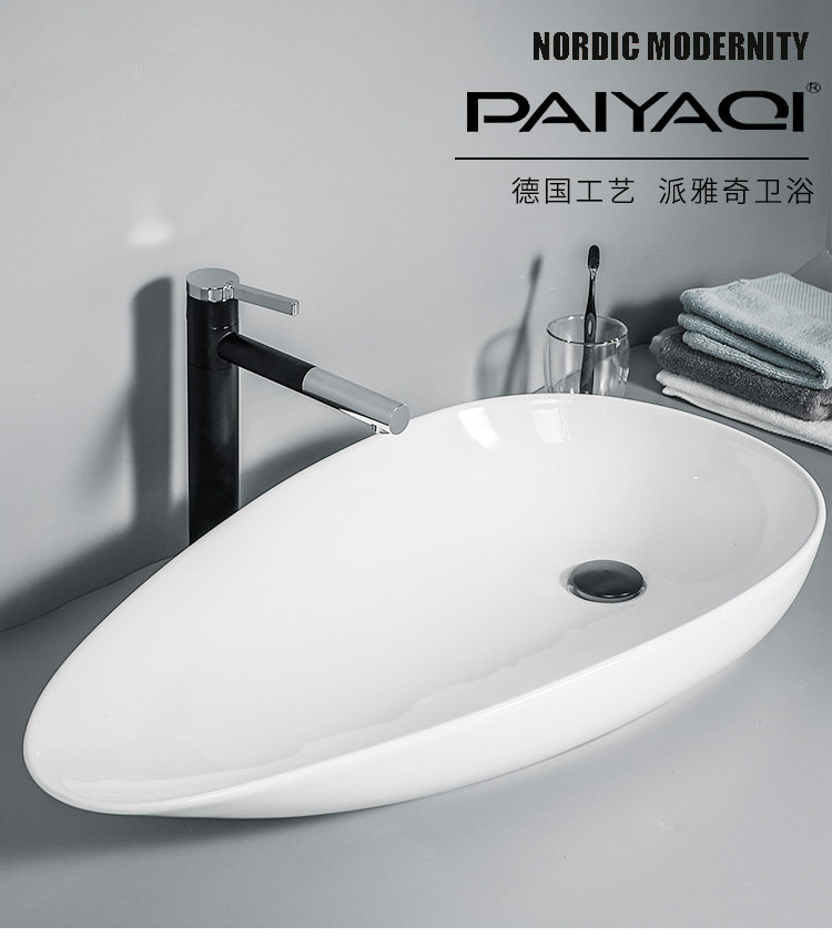 新款瓜子陶瓷盆侧下排水洗衣机伴侣台上盆大号尺寸洗手盆家用阳台