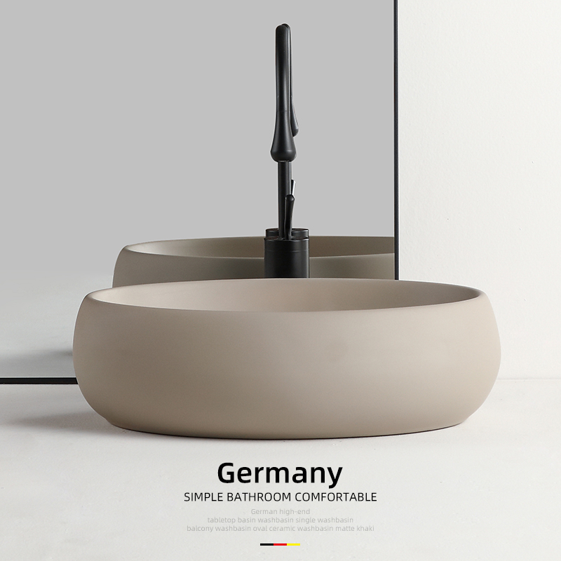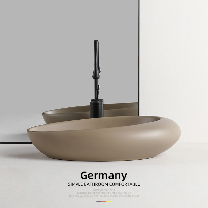 卫生间台上盆陶瓷洗漱脸盆台盆阳台洗手盆面盆卡其棕色椭圆形家用