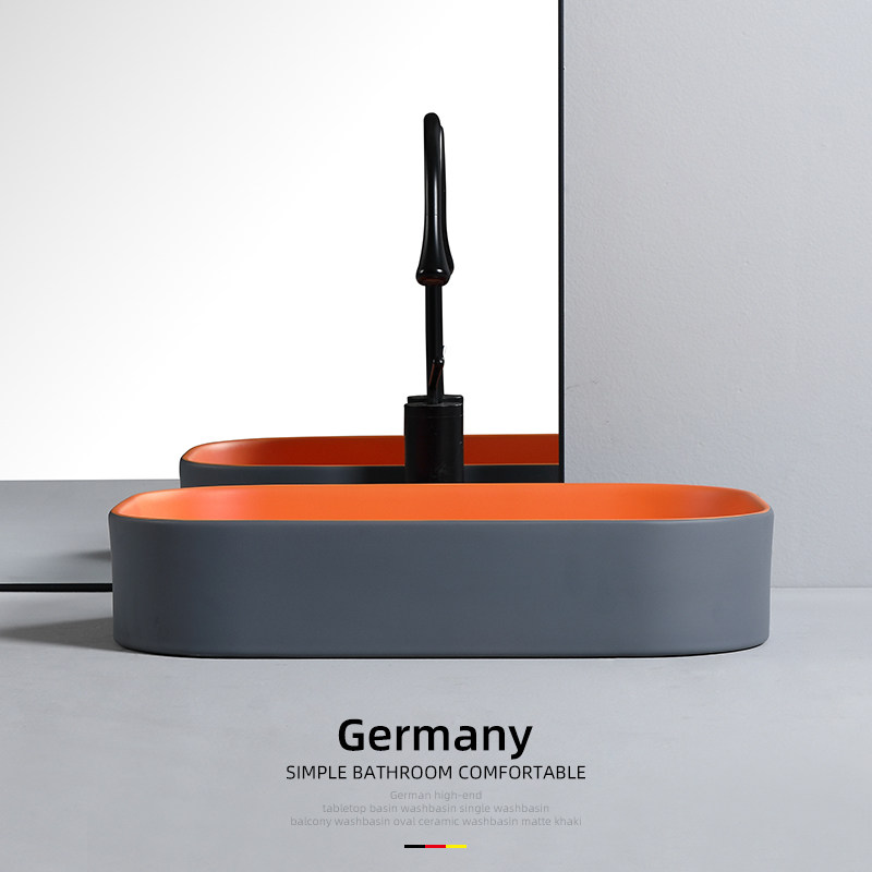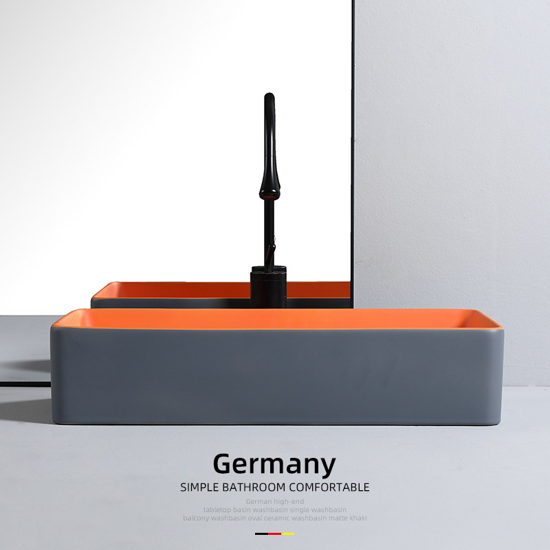 家用卫生间洗手盆灰橙色洗衣机台上盆阳台侧下水洗脸盆陶瓷长方形