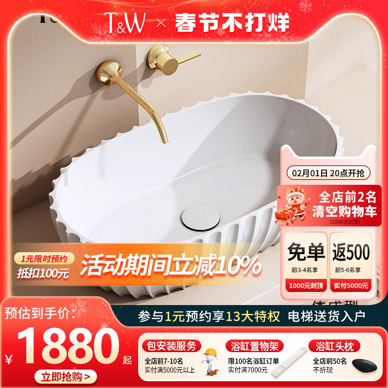 特拉维尔人造石台上盆洗手盆家用椭圆竖条纹卫生间阳台网红洗面盆