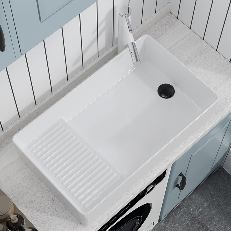 陶瓷洗衣盆侧排水搓衣板阳台洗手盆台上盆卫生间家用洗衣板大尺寸