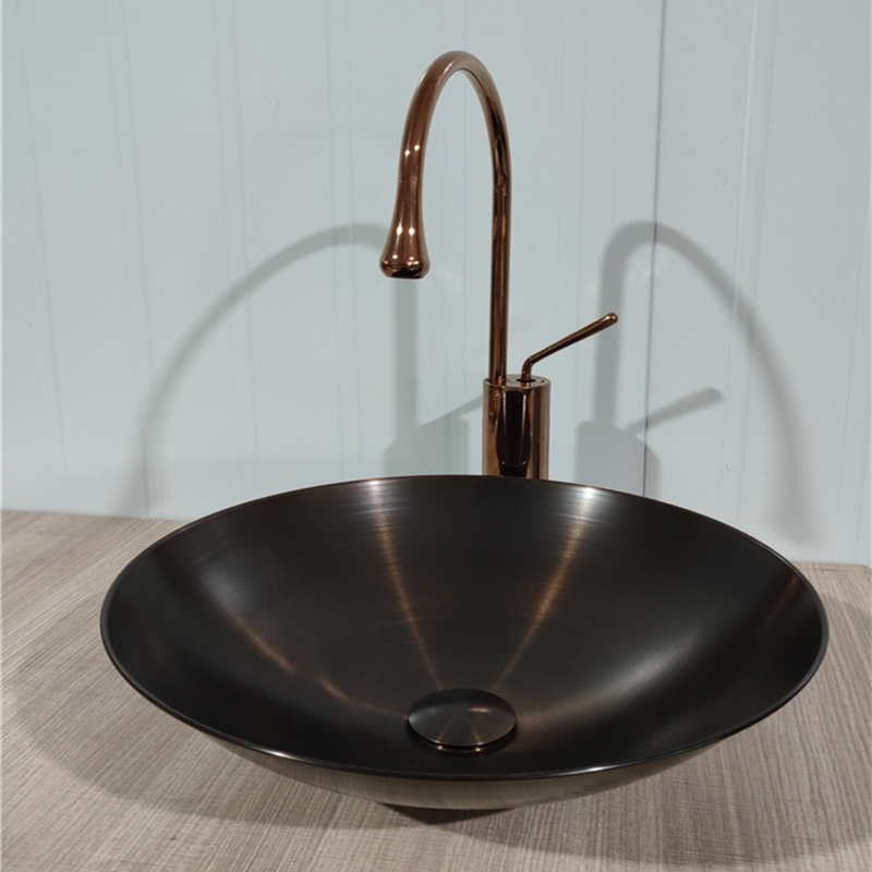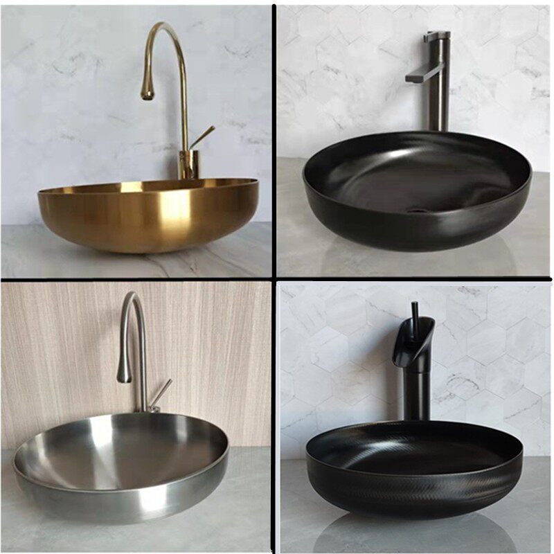台上洗面盆304不锈钢酒店幼儿园小号洗手池金黑色加厚大圆形脸盆