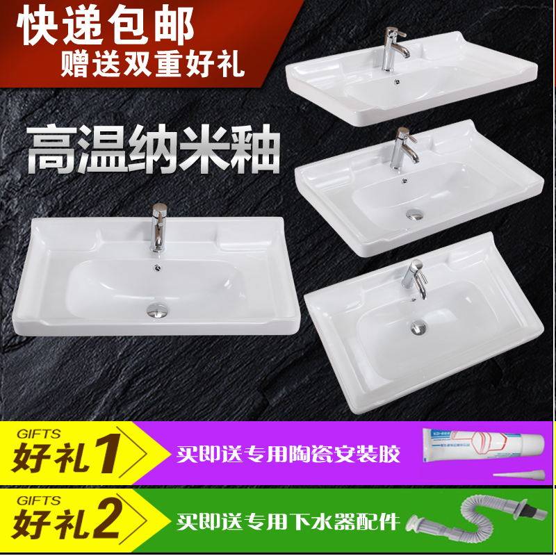 小户型挂墙式陶瓷洗手盆一体台面洗脸盆网红彩色马桶上挂盆洗漱池