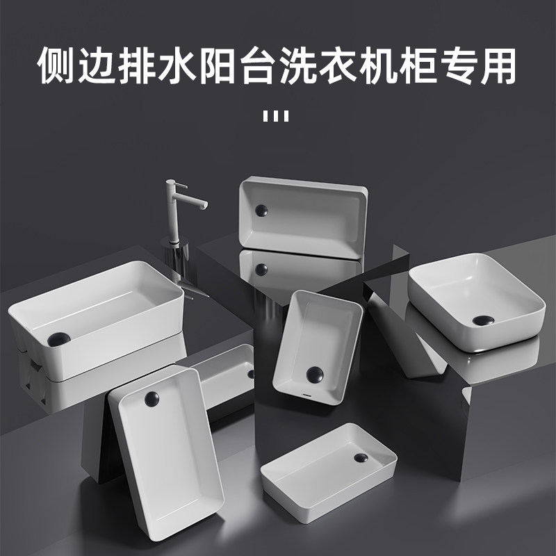 家用大尺寸陶瓷台上盆卫生间阳台洗衣机洗手盆台控侧边左右排水