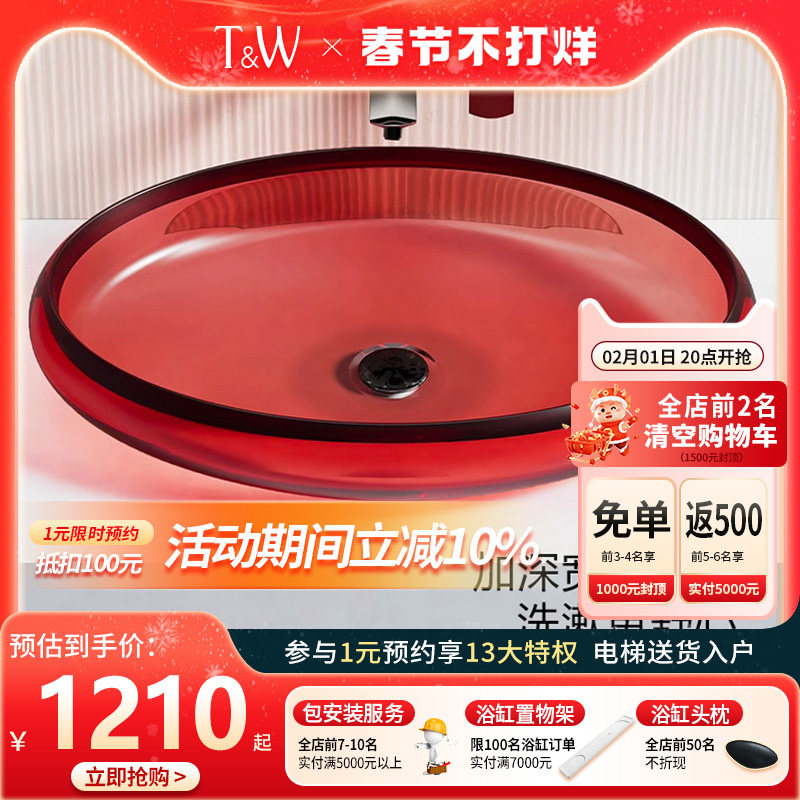 特拉维尔彩色透明树脂台上盆小尺寸卫生间洗手盆家用洗漱洗脸台盆