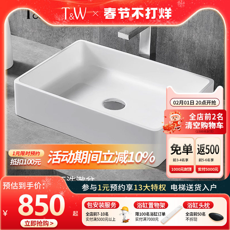 特拉维尔人造石台上盆家用长方形轻奢酒店民宿卫生间阳台洗脸手盆