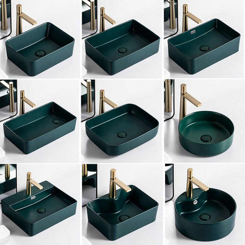 阳台台上盆洗手草绿色台盆面卫生间家用陶瓷洗脸盆洗漱盘台水盆池