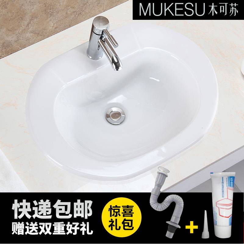 陶瓷盆台上盆嵌入式中边盆浴室洗脸盆一体面盆洗手盆柜盆艺术盆
