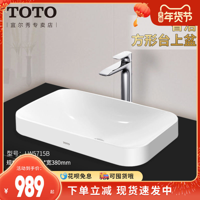 TOTO桌上盆LW5716 LW5715B长方形陶瓷台上盆洗手洗脸盆白色(07)