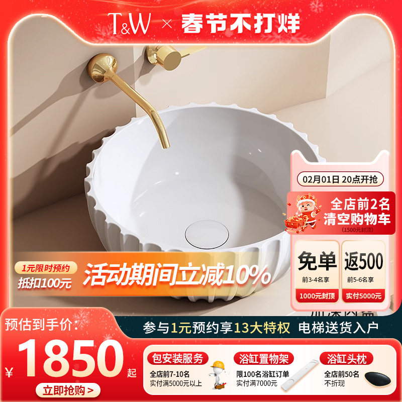 瓷帝卫生间台上盆艺术盆圆形洗脸盆面盆卫生间洗手盆家用洗漱盆