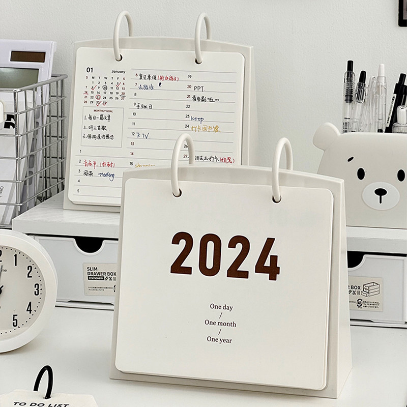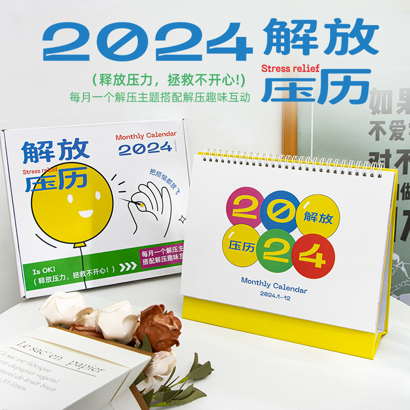 2024年月历解放压力日历学生学习简约办公室创意桌面摆件台历