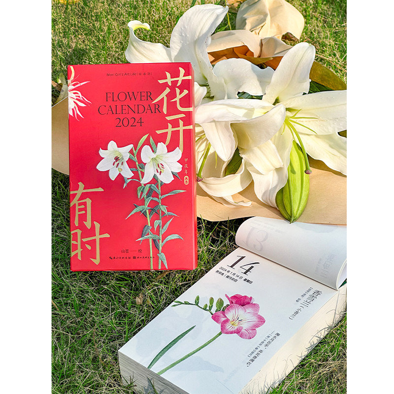 花开有时2024年日历新款手撕日历 插画师山苍创意可撕原创设计ins风台历桌面摆件水彩花卉作品手账24节气一日一诗词绘森活图书籍