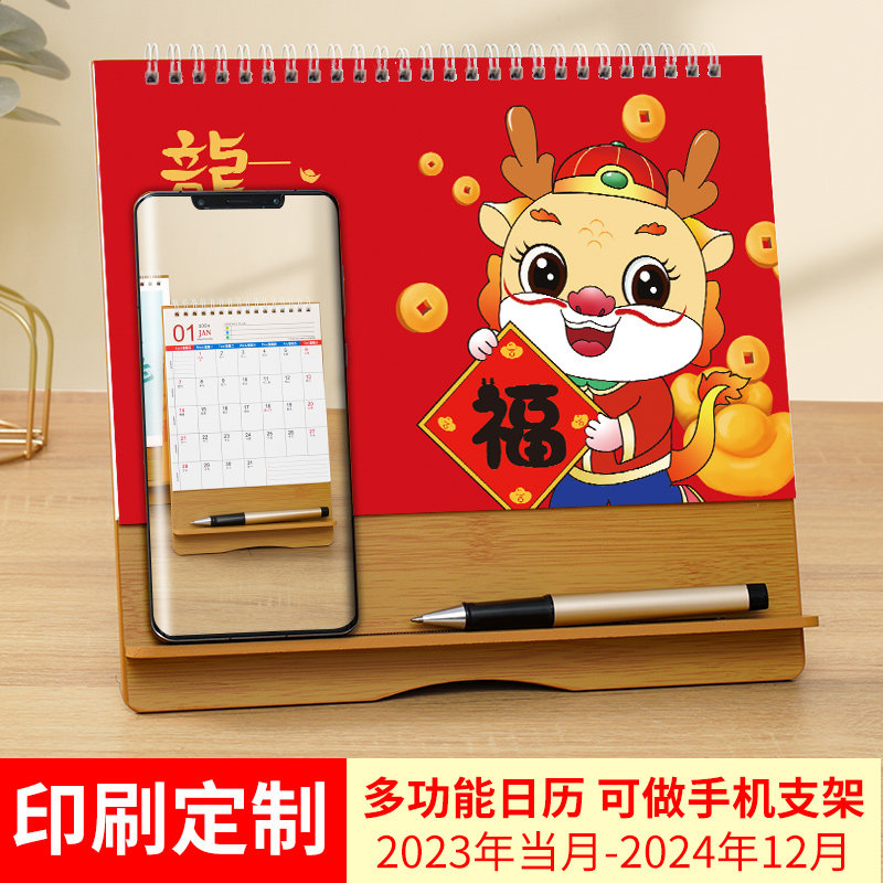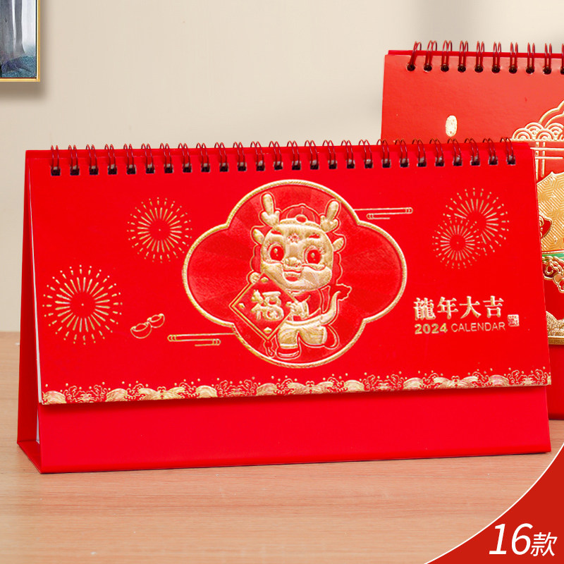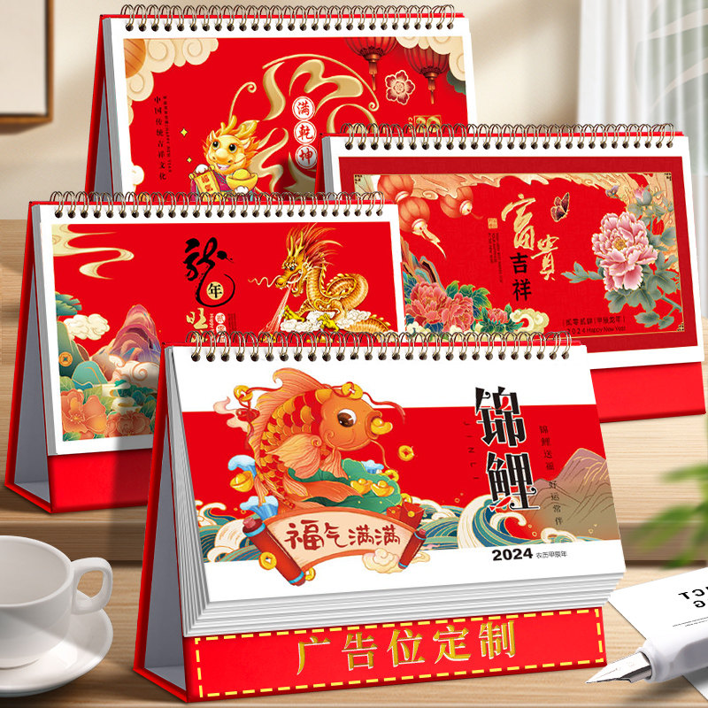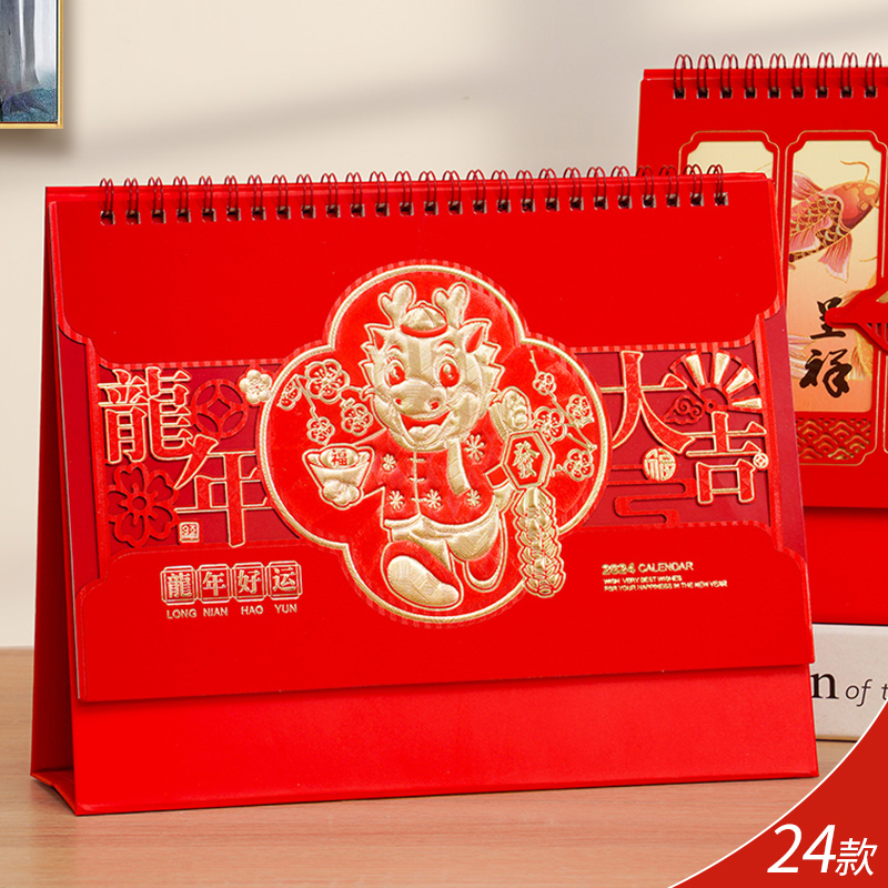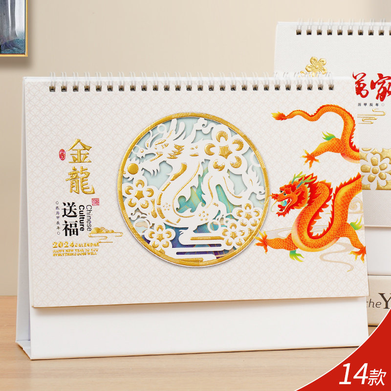 2024龙年台历中国风艺术日历制作公司企业商务广告创意月历定做保险礼品小清新办公桌面摆件赠品烫金印刷定制