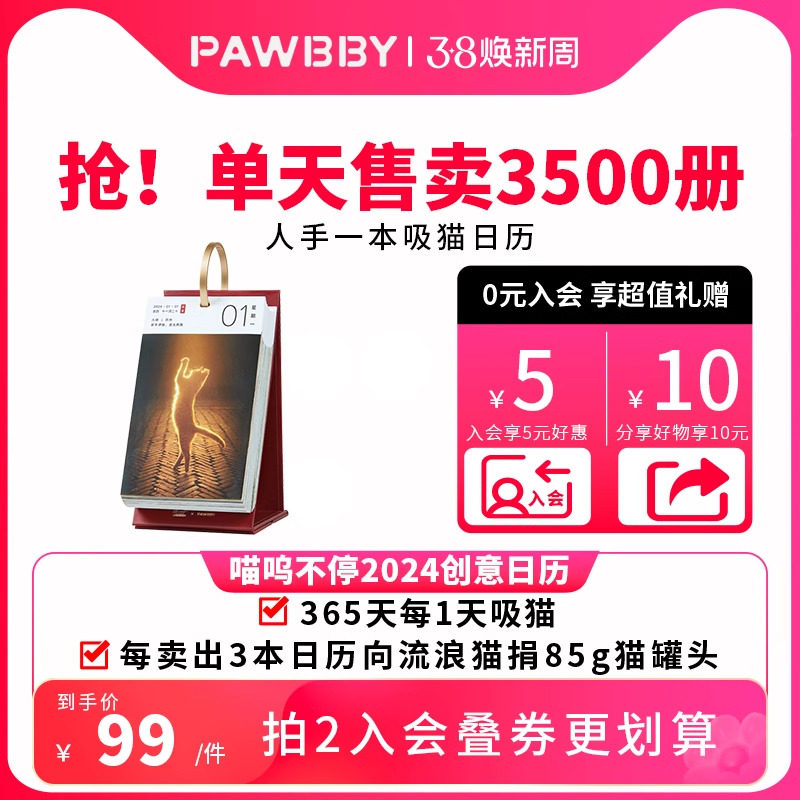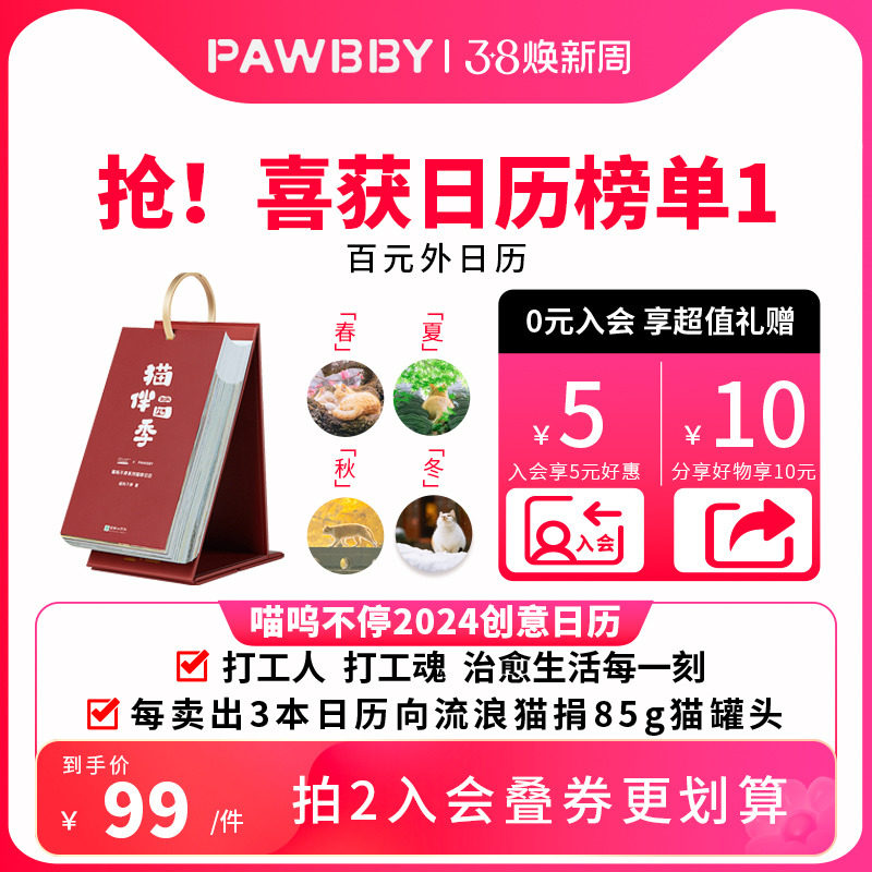 【生日礼物】PAWBBY喵呜不停街猫日历2024年猫咪日历创意桌面摆件新年生日礼物旅行小台历文艺青年龙年