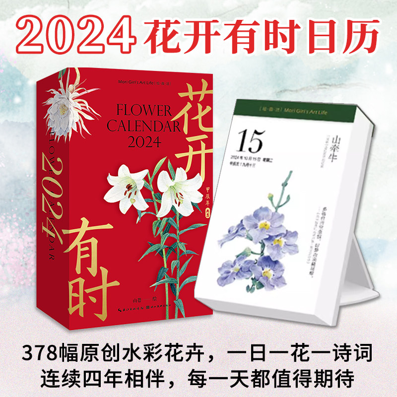 花开有时2024年日历手撕日历新款创意ins风文创台历桌面摆件手绘原创插画水彩花卉画册手账二十四节气每天一首古诗词书籍绘森活