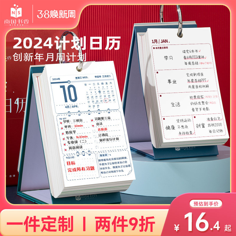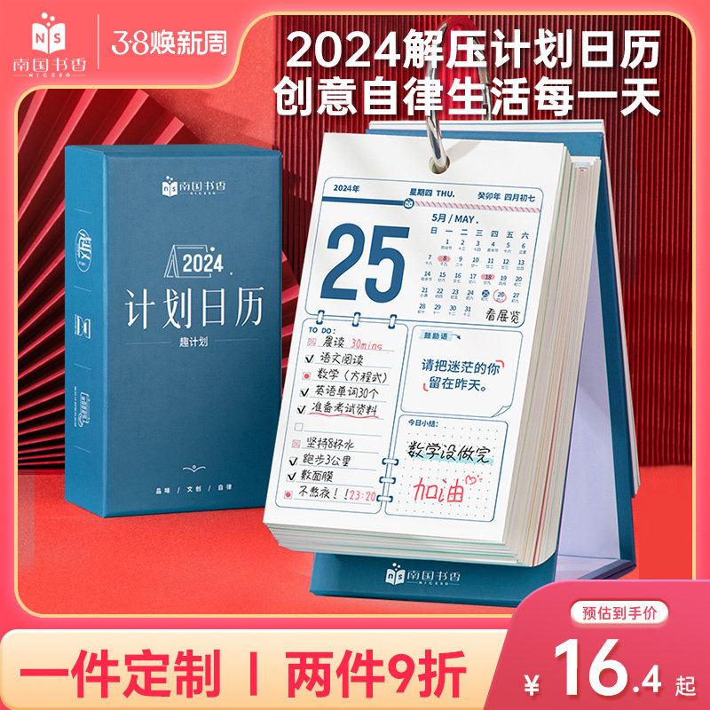 南国书香2024年新款计划解压日历中考高考考研倒计时摆件自律礼物打卡记事本创意桌面励志台历每天一页可定制