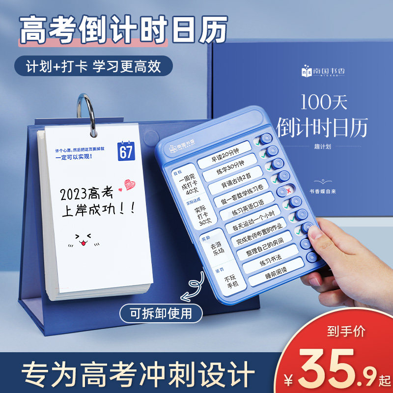 南国书香2024新款中高考倒计时日历100天冲刺提醒牌每日自律学习计划打卡桌面学生考试解压神器考研台历摆件