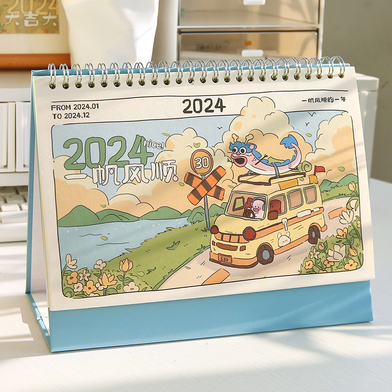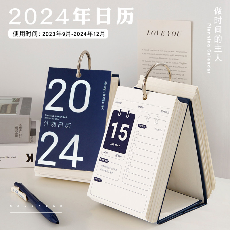 日历台历2024年新款创意桌面摆件定制倒计时翻页年历龙年记事月历
