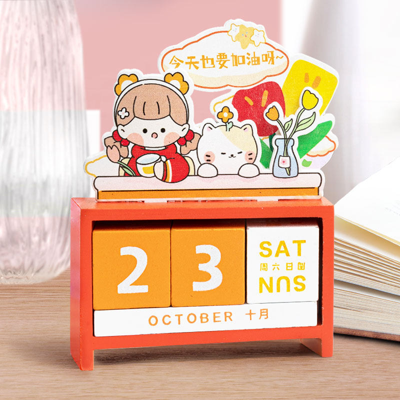 木质日历桌面摆件创意可爱2023积木迷你小台历表木制diy中考高考倒计时提醒牌考研励志办公室2024日期万年历