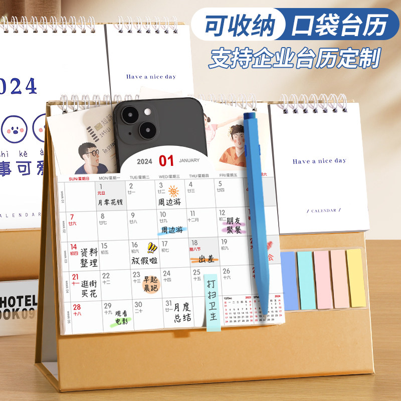 口袋台历2024年新款定制创意简约商务办公 2023年日历订做公司企业工作桌面摆件计划本制作可爱小月历ins风