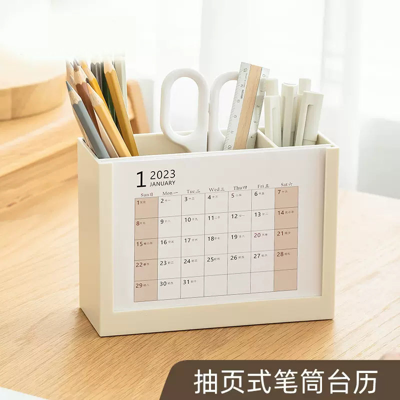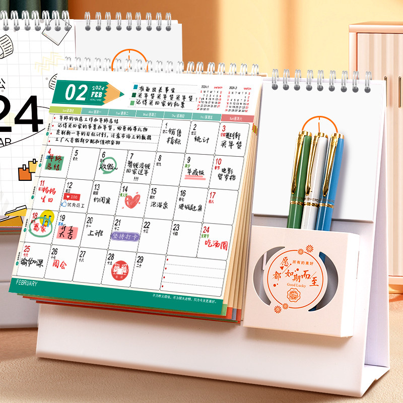 笔筒台历2024年新款定制桌面商务办公室工作用日历摆件创意记事本自律打卡计划年历打卡龙年月历企业公司订做