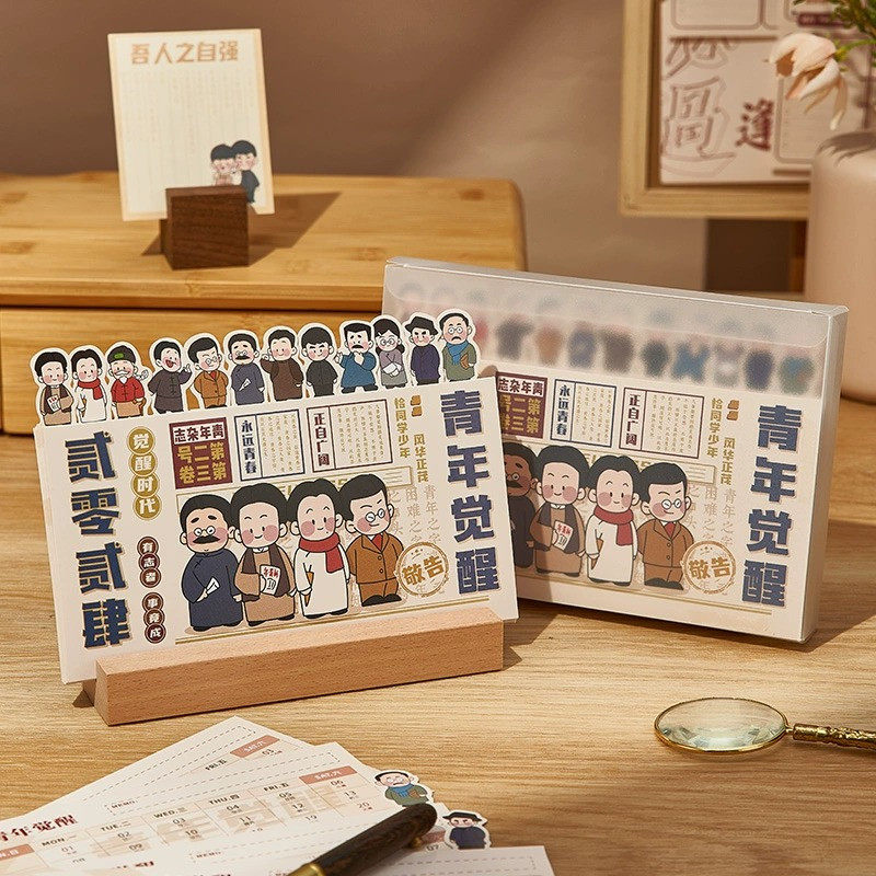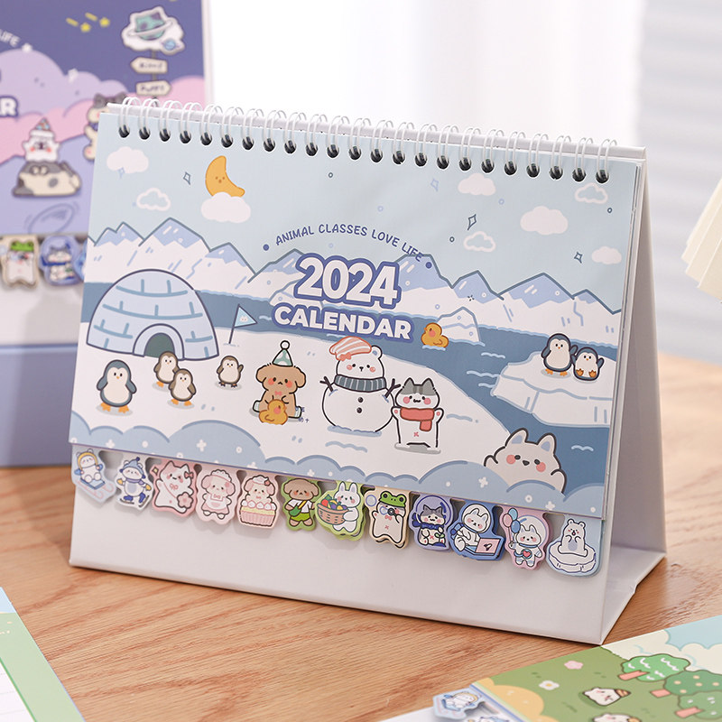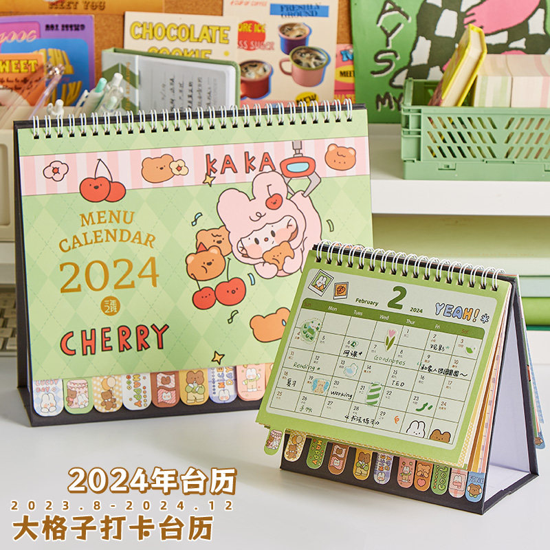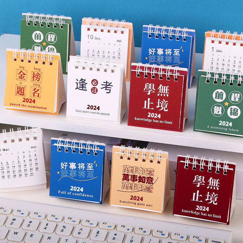 三年二班2023-2024年新款日历迷你小台历办公室桌面摆件可爱卡通月历创意考研工作自律打卡记事计划本