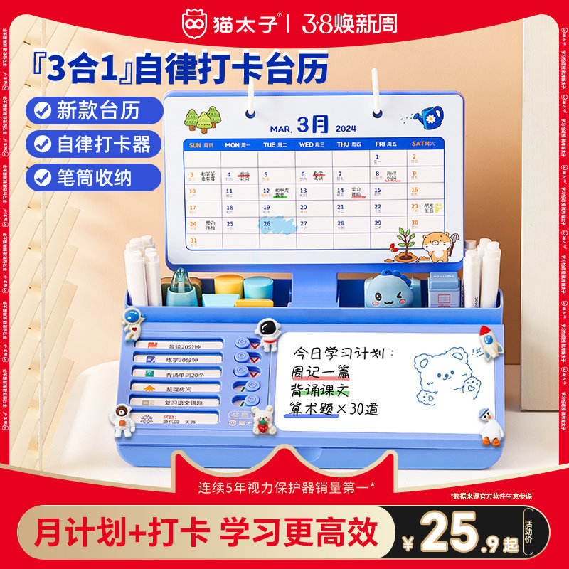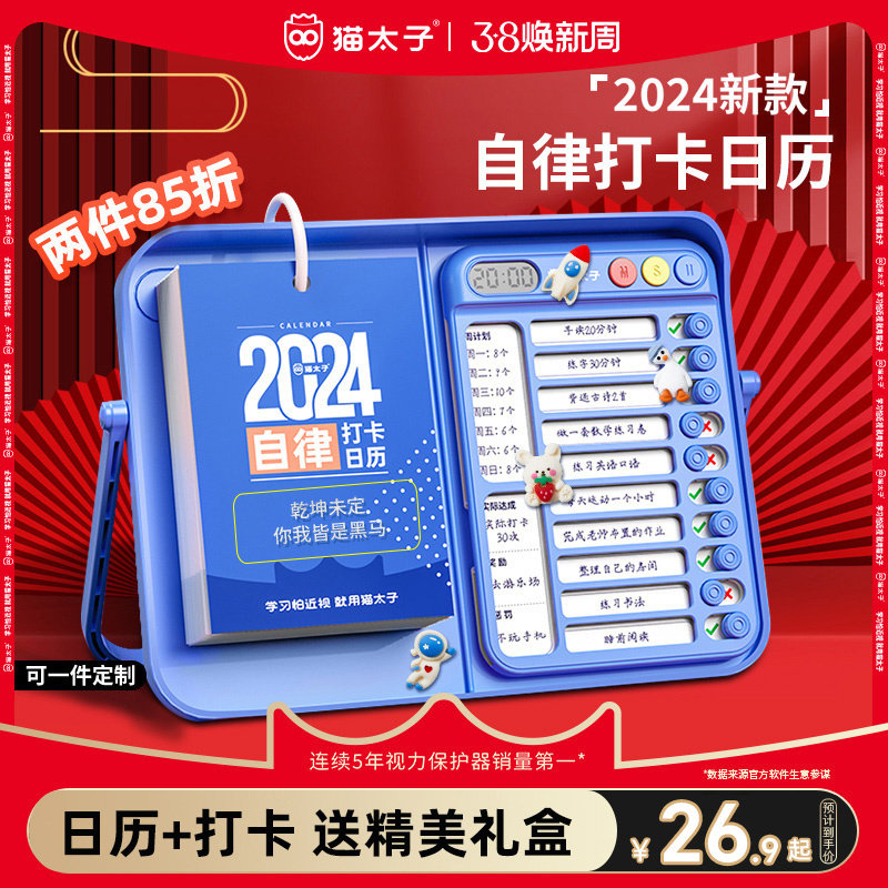 猫太子自律打卡计划日历2024年新年款礼物创意学生台历定制记事本办公学习桌面儿童寒假计划表倒计时提醒神器