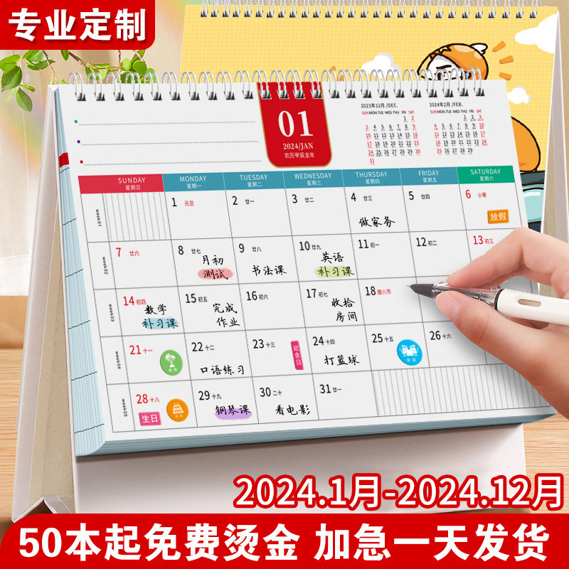 台历2024年创意简约办公计划本商务记事可爱桌面摆件月历每日ins风2023广告年历定制龙年工作打卡小日历印刷
