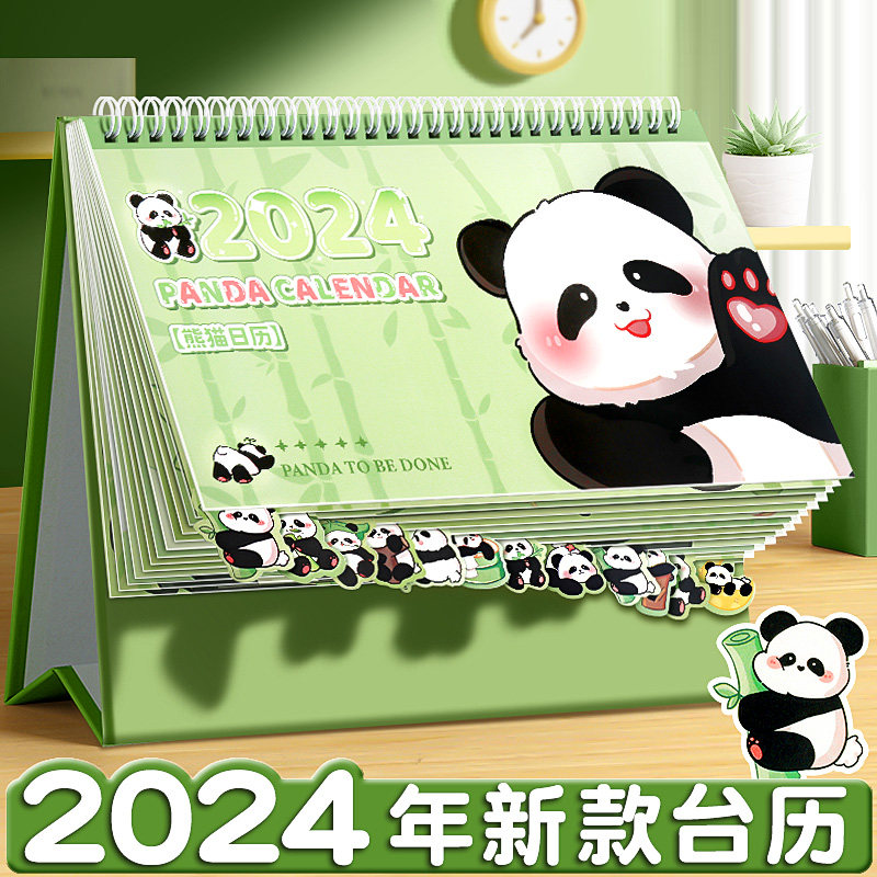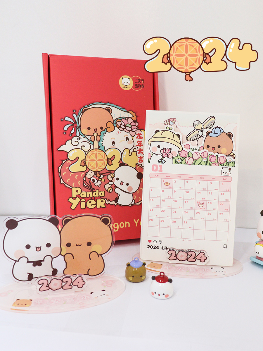 熊猫一二布布2024新年台历亚克力支架可爱桌面创意摆件日历计划本