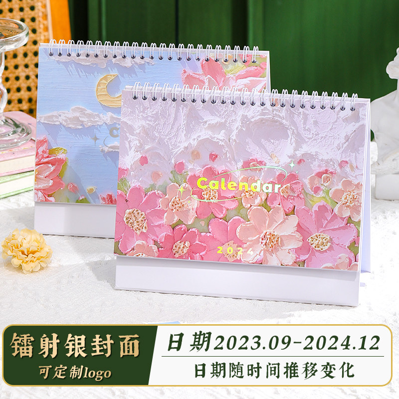 2024年油画台历高颜值简约ins风高考考研倒计时提醒牌打卡计划本办公桌面创意日历小摆件记事本日历可定制